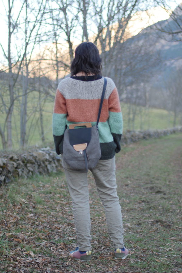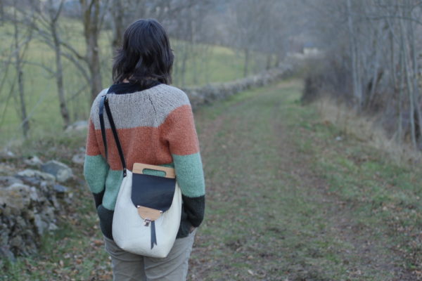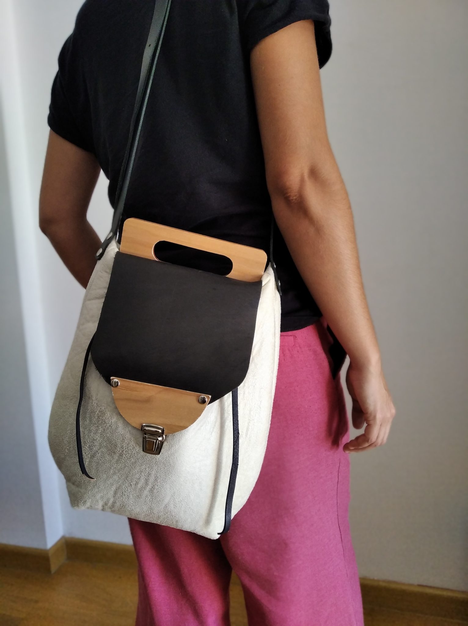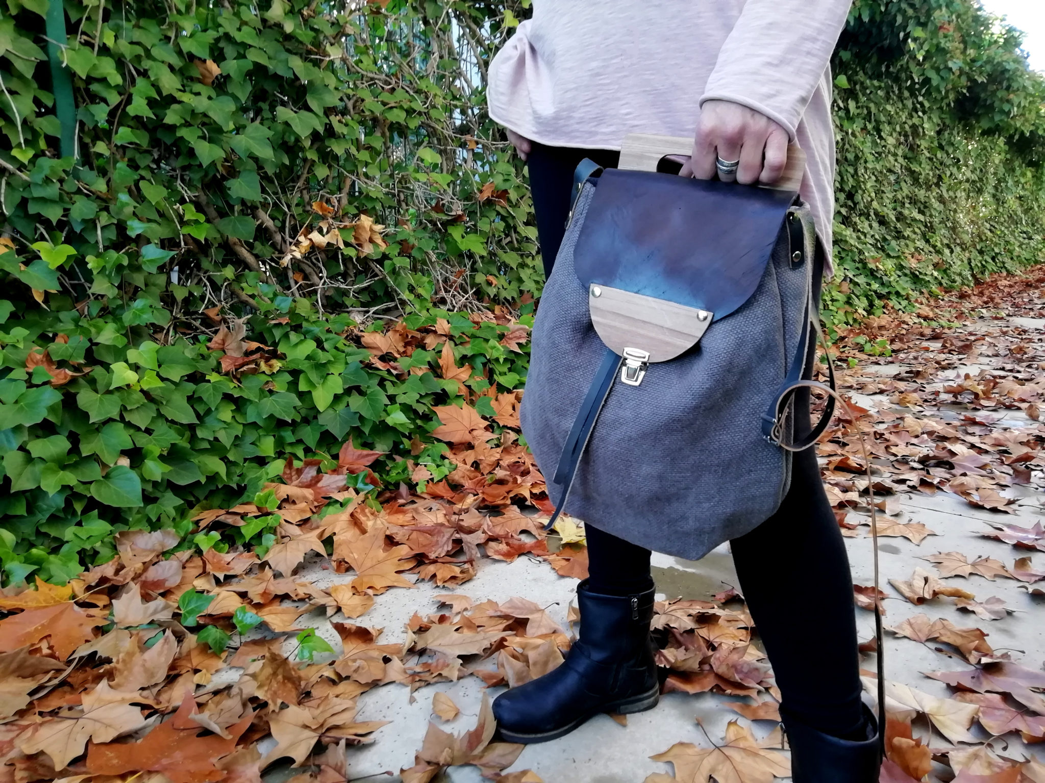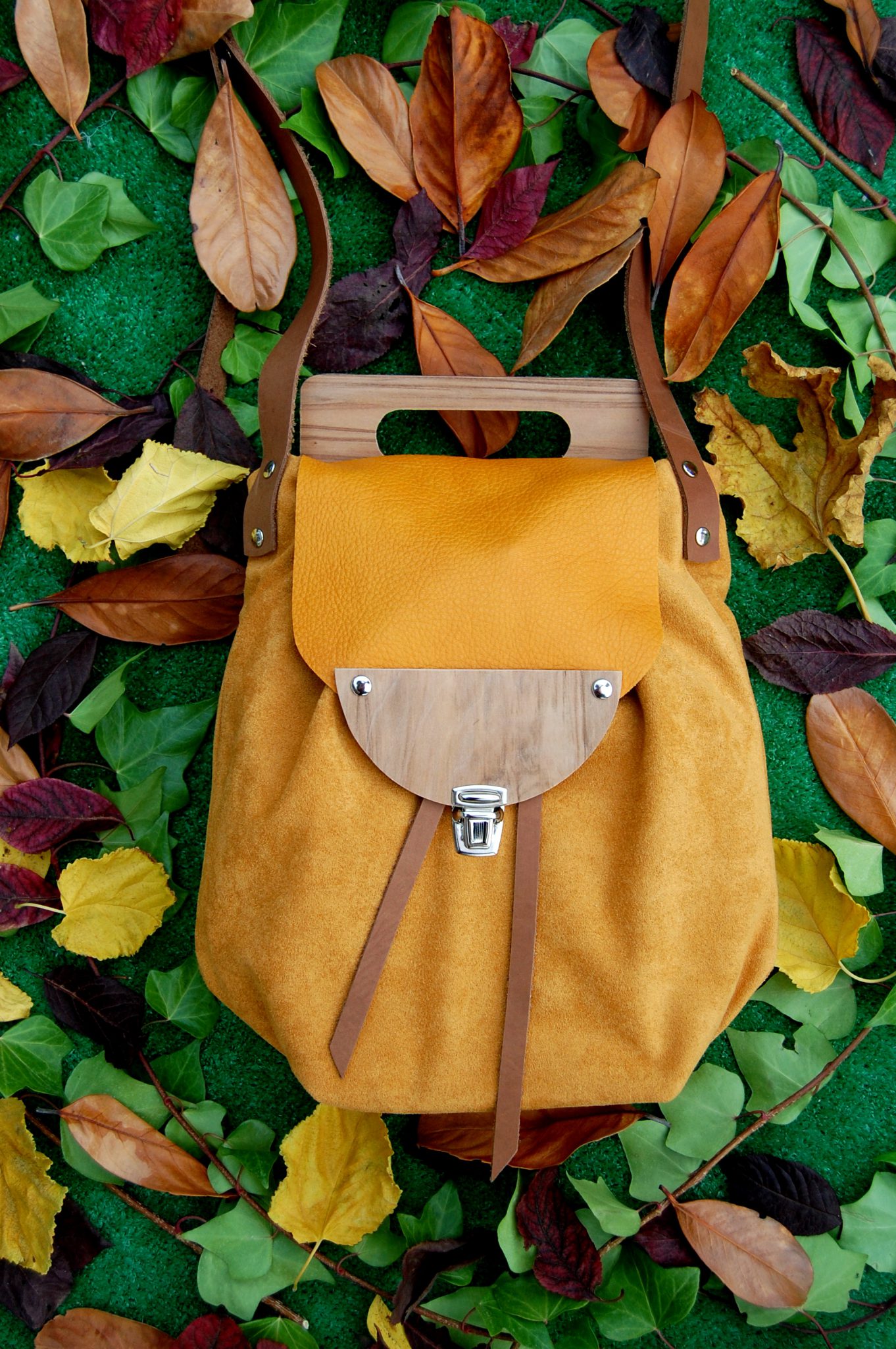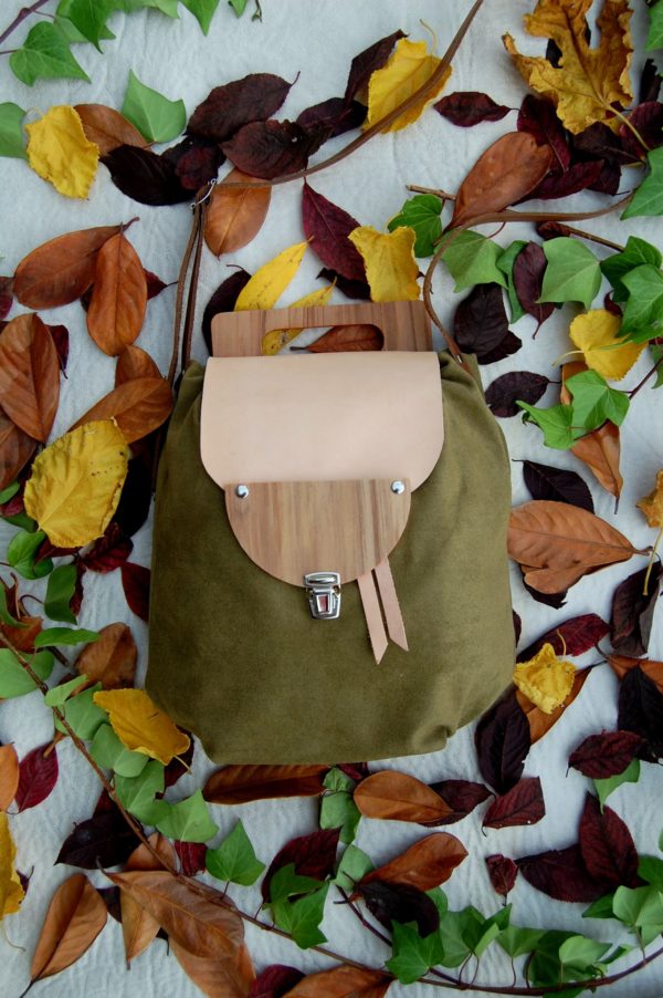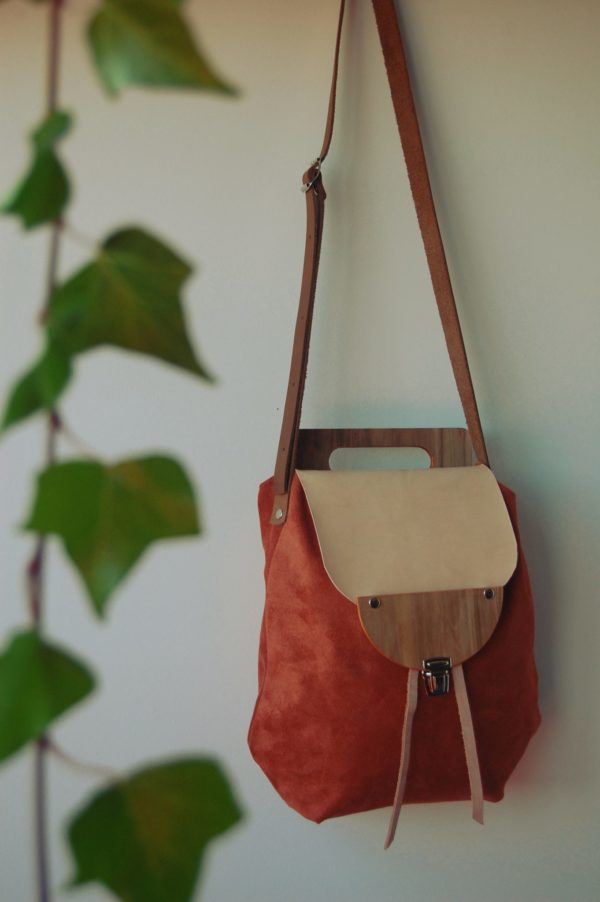 Solapa de piel y madera.