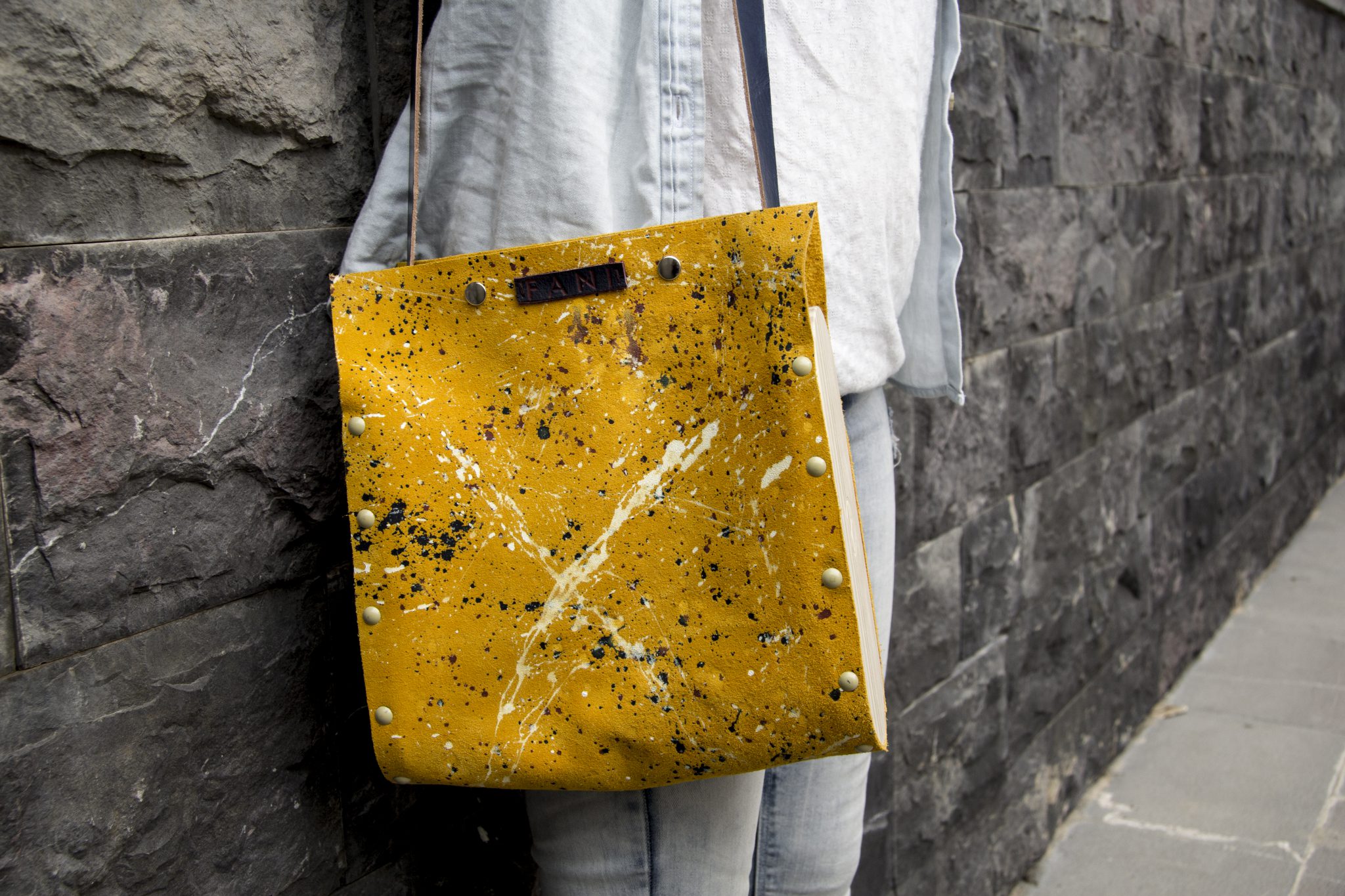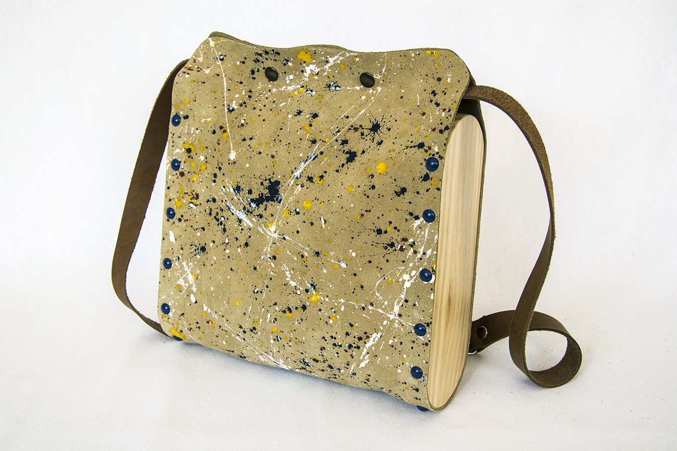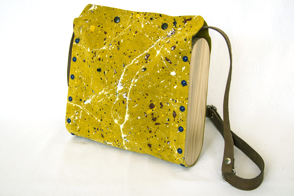 -Bolso en piel de serraje, pintado a mano.